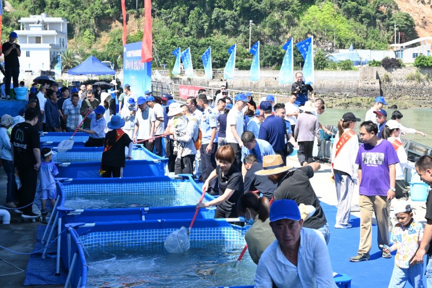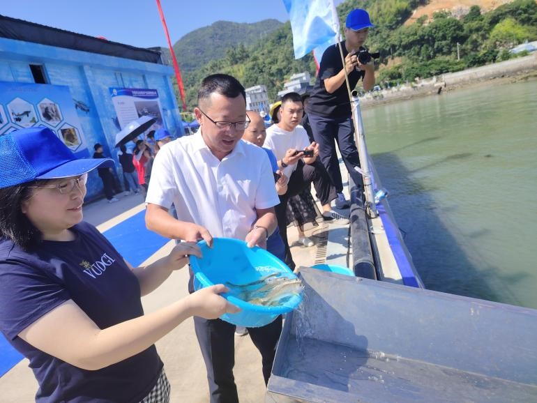 6 月 6 日,受宁德市海洋与渔业局邀请,十大网投官网党委书记周建辉带领学院教师韩坤煌博士、周莉博士以及学生志愿者参加了 2025 年度 “6・6 八闽宁德放鱼日” 大黄鱼增殖放流活动。此次活动由宁德市海洋与渔业局主办,地点位于宁德市以也海洋产业发展有限公司国家级大黄鱼原种场。来自宁德市人大、市政协、市检察院等单位的共计 200 多人参与了本次意义非凡的活动。