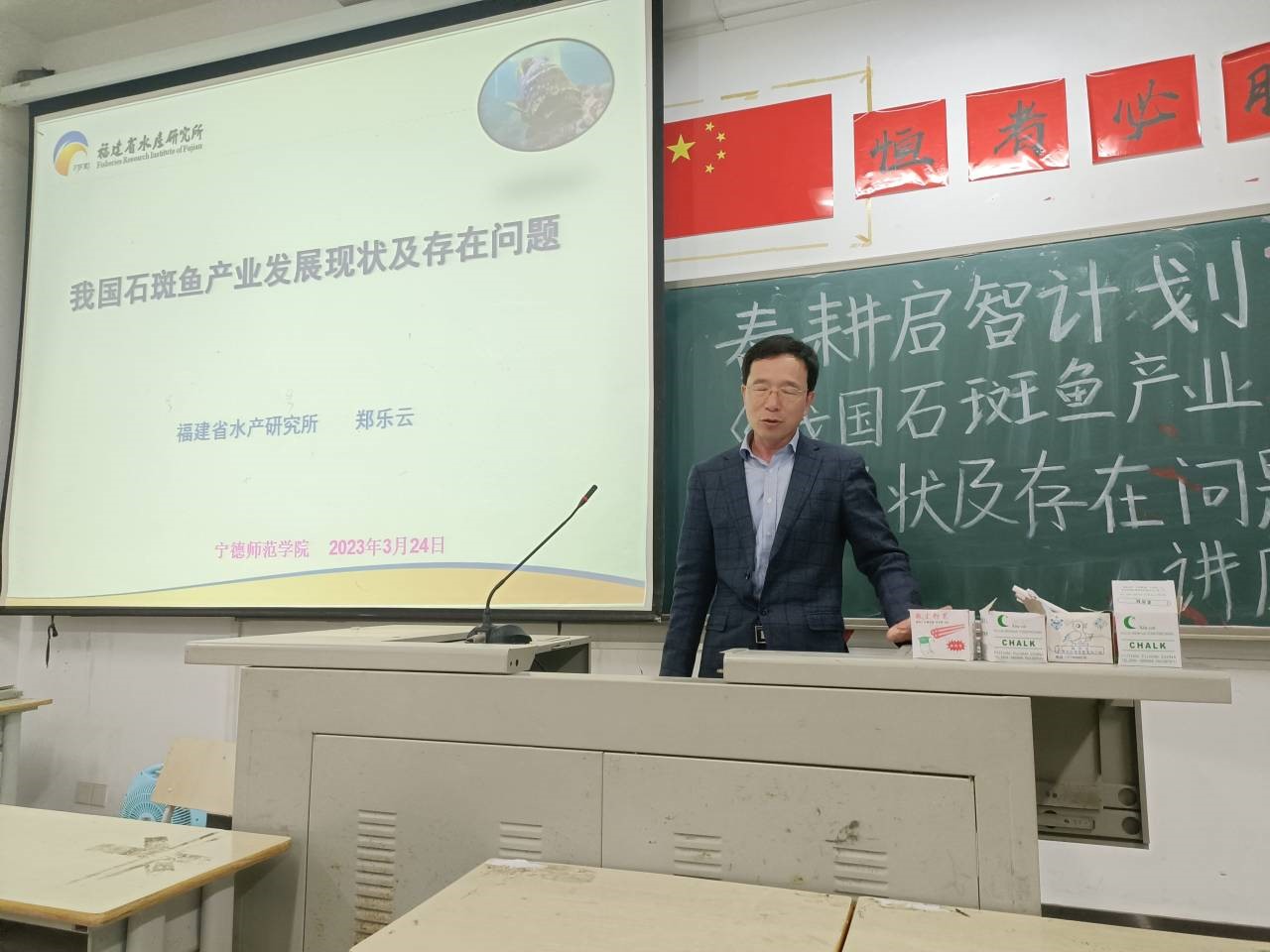 3月24日下午,福建省石斑鱼种业创新和产业化工程首席专家、福建省水产研究所海洋生物遗传育种研究中心副主任郑乐云教授级高级工程师莅临十大网投官网,为十大网投官网师生作了一场题为《我国石斑鱼产业发展现状及存在问题》的精彩报告。此次报告由十大网投官网海洋系主任韩坤煌博士主持,讲座吸引了十大网投官网100多位海洋学科师生参加。