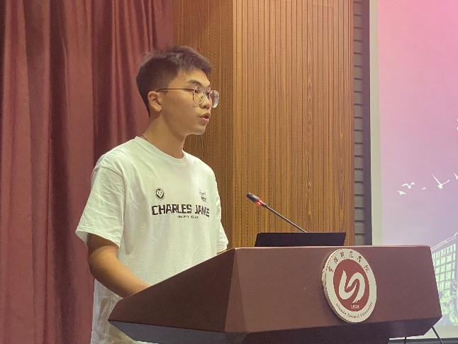 食品科学与工程系的青年教师蔡彬新博士,作为教师代表发言,他鼓励新生们要树立远大理想,秉持终身学习的态度,勇于在海洋科学的广阔天地中挥洒青春,绽放属于自己的光彩。
