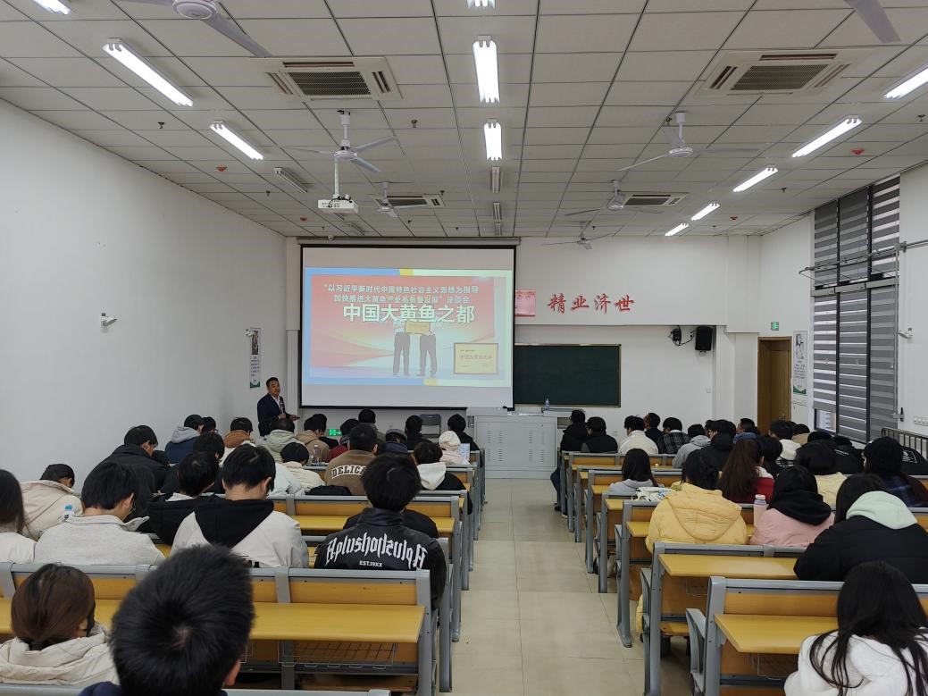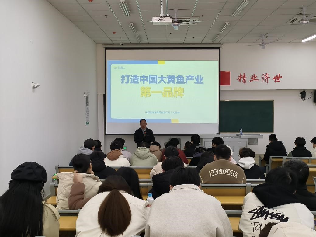1月8日上午,十大网投官网邀请三都港海洋食品有限公司总经理尤信铃在医教楼101开展“大黄鱼品牌建设——三产融合发展之路”专题讲座,十大网投官网党委班子、师生代表和生物科学与工程学院学生代表参与讲座。讲座由副院长孙壮桥主持。