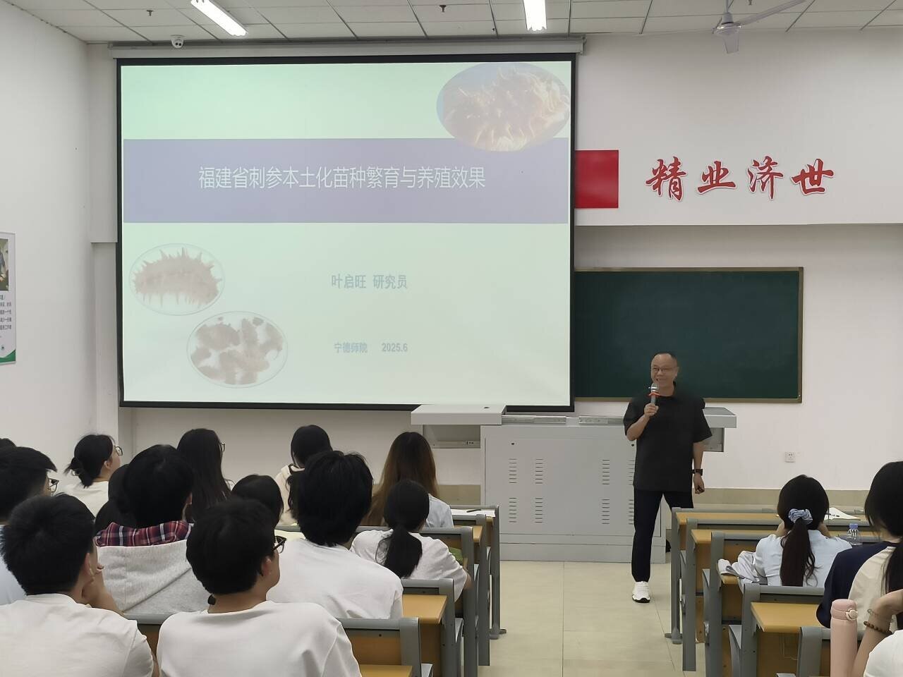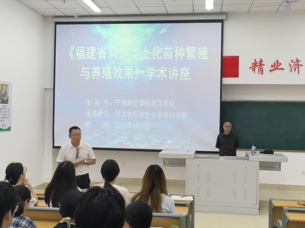 为了推动福建省刺参本土化苗种繁殖与养殖技术的创新发展,助力海洋学科的学术交流与实践探索,2025年6月3日,十大网投官网在医教楼101成功举办了《福建省刺参本土化苗种繁殖与养殖效果》讲座。此次讲座为师生们提供了一个深入了解刺参养殖前沿技术、交流实践经验的宝贵平台,为福建省刺参养殖产业的高质量发展注入了新的活力。
