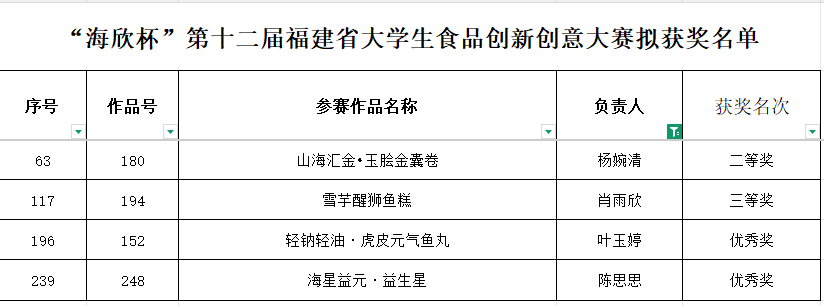 喜讯!十大网投官网学子在“海欣杯”第十二届福建省大学生食品创新创意大赛取得佳绩