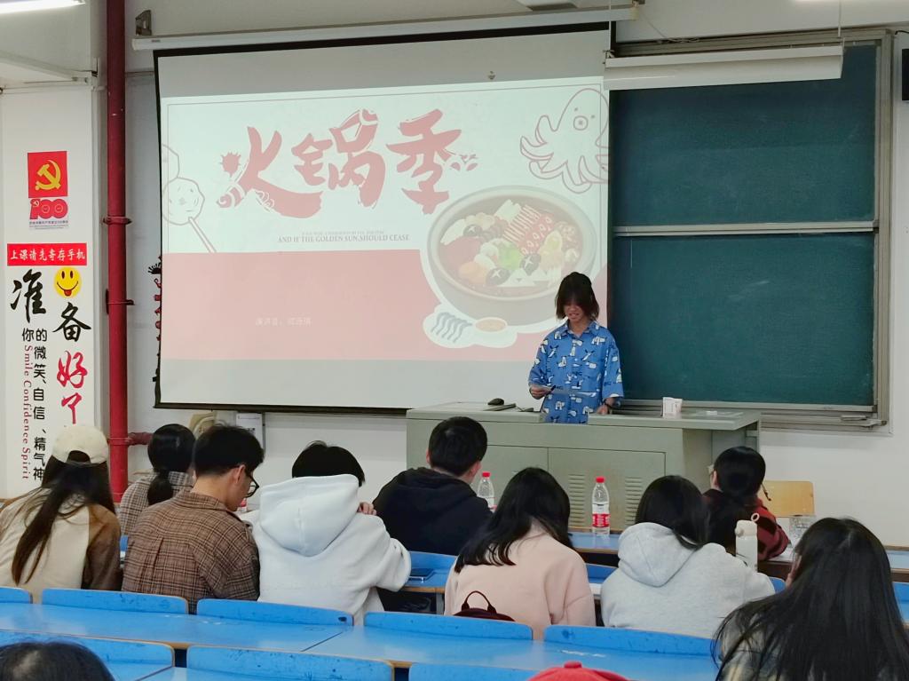 成果展示会上,来自萌源小学支教队的代表2022级生物科学专业的陈文茜以“以梦为马,云端逐光”为题,讲述了队伍在周宁县萌源村萌源小学开展支教,设立心理游戏、救护知识、日常生活常识、建设植物角等活动,为孩子们带去温暖的支教活动的成果展示尤为精彩。另外来自飞鸾中心小学支教队的代表2022级生物技术专业邹烨,食品科学与工程专业郭湉湉展示队伍在蕉城区飞鸾镇飞鸾中心小学进行辅导孩子们功课,培养孩子们兴趣爱好等支教活动;来自川渝火锅产业调研组的代表2022级生物技术郑诗琪按照地区、特点对火锅进行分类,调查川渝火锅产业的背景及现状,结合调查数据分析川渝火锅行业未来发展趋势等进行展示。各个团队在展示会上分享团队的实践经验,展示团队活动的成果。