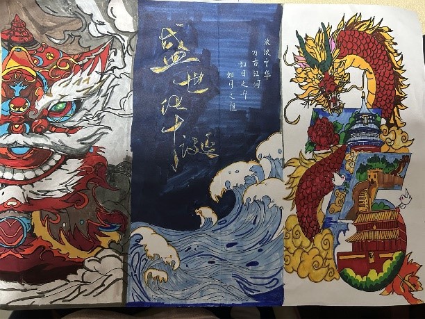 在本次活动中,同学们热情高涨,踊跃参与报名。同学们自主设计手抄报版面,精心准备绘画素材,从中国浩瀚的历史长河中选取国庆的元素。每一幅作品都蕴含着同学们对祖国的深厚情谊和对美好生活的向往,这些作品不仅展示了参赛同学的绘画才能,更是激发了海洋学子的爱国热情。