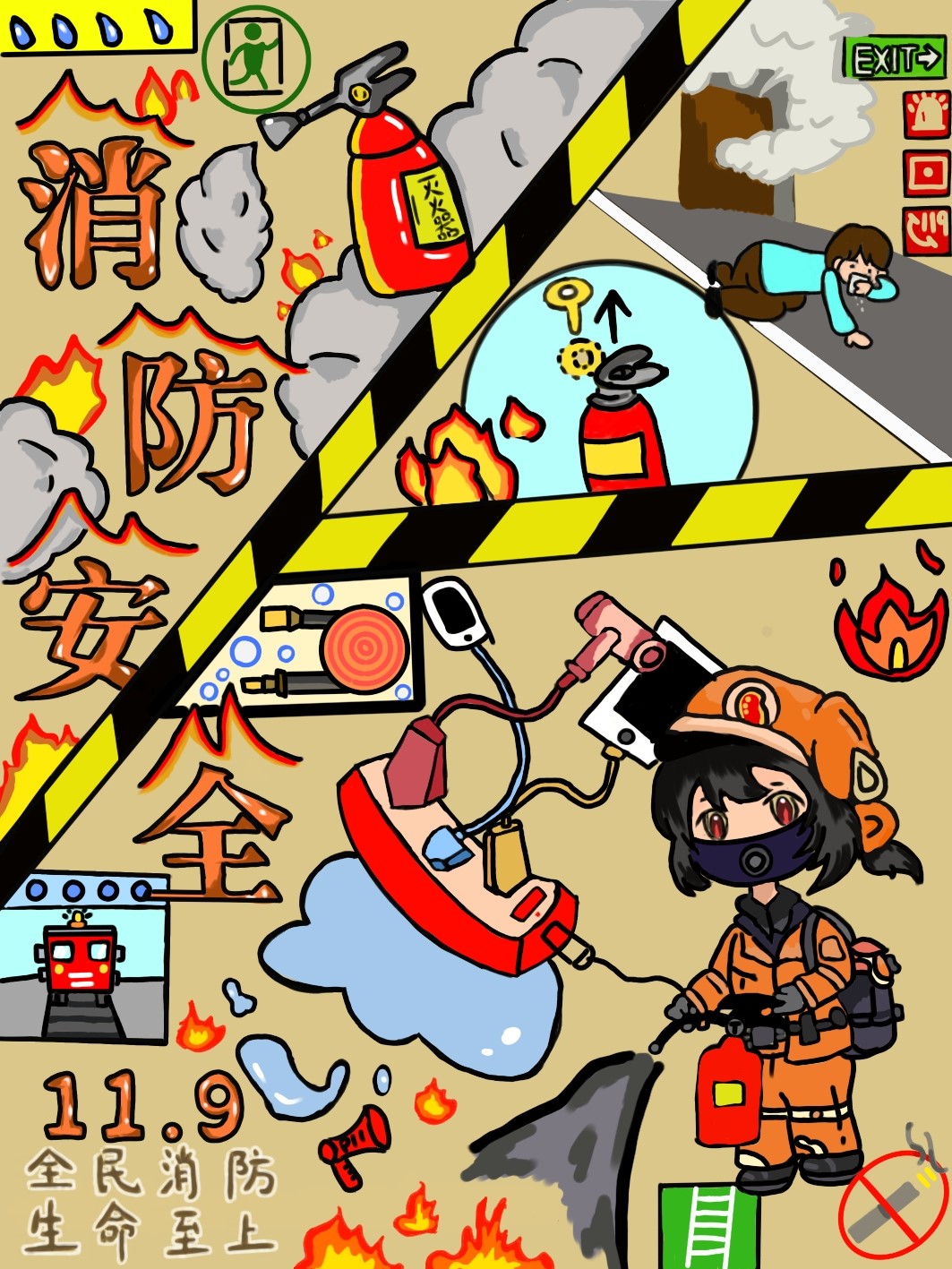 活动期间,同学们热情高涨,踊跃报名参加。同学们自主构思海报布局,悉心搜集消防素材,从日常生活的消防场景、英勇的消防救援事例里汲取灵感。每一幅作品都凝聚着同学们对消防安全的重视和对平安生活的祈愿,这些作品不仅彰显了参赛选手的制作能力,更是唤起了海洋学子的消防意识。