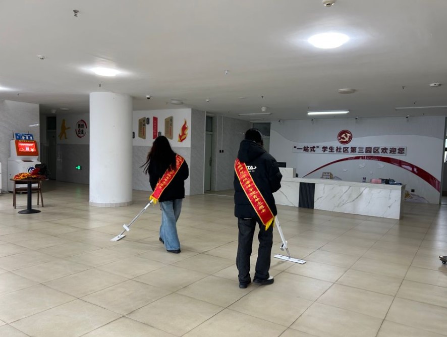 活动期间,志愿者们深入学生社区,积极投身于志愿服务劳动实践活动之中,以实际行动共同营造舒适和谐的校园环境和学习生活氛围。在团委志愿服务部庄妍妍的带领下,志愿者们分组协作,对第三园区内的公共区域、宿舍楼周边以及教学楼周边等区域进行了全面而细致的清理。他们不畏脏累,认真整理书籍,清扫地面,用实际行动诠释了雷锋精神的内涵。在活动过程中,志愿者们不仅认真完成各自的清洁任务,还主动向同学们宣传环保知识和文明行为,倡导大家共同维护良好的校园环境。他们的热情服务和无私奉献精神得到了同学们的高度认可和广泛赞誉。