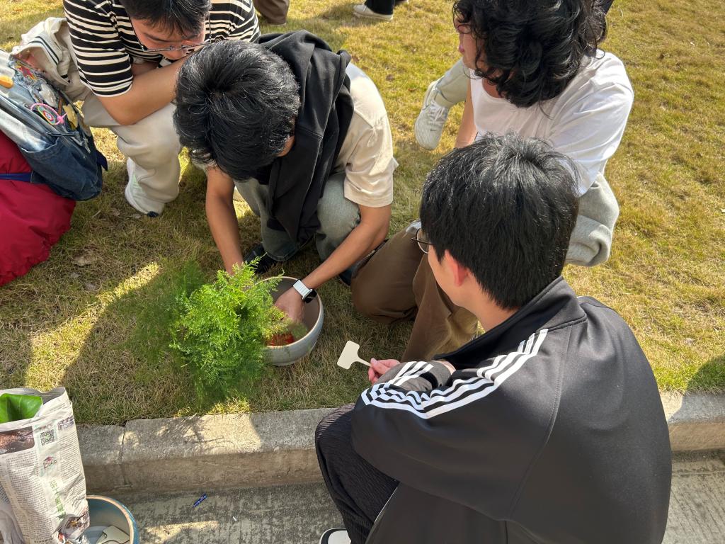 活动当日,阳光暖煦,微风不燥,正是植树好时节。参与者们满怀热忱,准时在澳门十大网投平台排行院楼下集合。实践部的工作人员早已忙碌完毕,植树工具整齐排列,各类植物生机勃勃,静静等待着开启这场绿色之旅,现场氛围有序而热烈。本次活动精心购置了12株寓意美好的植物,涵盖了绣球、文竹等,每株植物由3 - 5人自由组队进行种植,大家迅速寻找队友,组建起“绿色小团队”,为即将开始的种植工作摩拳擦掌。植树活动正式开始,同学们默契配合,现场一派热火朝天的劳动景象。在劳作过程中,同学们还交流起植树技巧与环保心得,欢笑声、讨论声交织在一起,奏响了一曲欢快的春日劳动乐章。