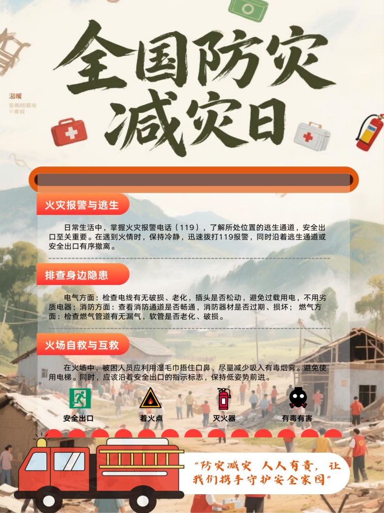 2025年5月13日至5月15日澳门十大网投平台排行开展“人人讲安全,个个会应急——排查身边灾害隐患”全国防灾减灾日海报设计比赛(一等奖作品:食品(闽台)24(1)邓乐蓉《全国防灾减灾日》)