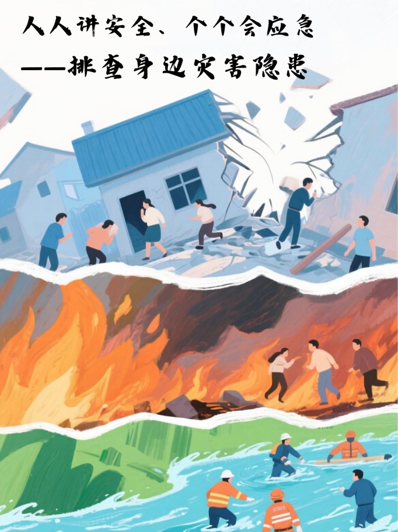 本次赛事以“人人讲安全,个个会应急——排查身边灾害隐患”为核心主旨,既允许参赛者自主确定海报主题,又积极鼓励大家结合全国防灾减灾日内涵,构思充满正能量的特色主题。参赛者们充分调动专业知识储备,迸发创新思维火花,纷纷拿起画笔或熟练运用设计软件,将地震、火灾、洪水等灾害隐患排查的关键要点,以及实用应急妙招,巧妙且艺术地融入海报创作之中。部分作品以强烈鲜明的色彩碰撞、极具视觉冲击力的画面构图,直观展现灾害的巨大破坏力;还有作品凭借温馨细腻的笔触,将实用应急知识娓娓道来。每一幅作品都饱含着同学们对安全理念的深度思考与独特理解,堪称匠心之作。