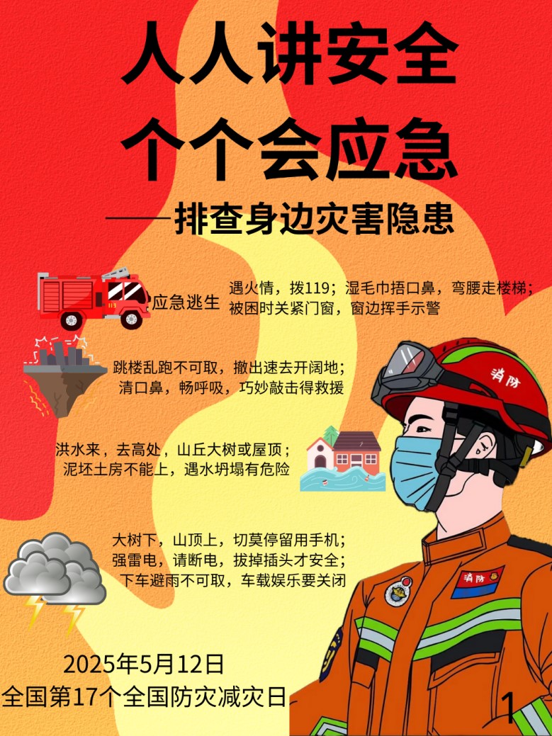 2025年5月13日至5月15日澳门十大网投平台排行开展“人人讲安全,个个会应急——排查身边灾害隐患”全国防灾减灾日海报设计比赛(二等奖作品:食品23(1)吕燕如《防灾减灾,你我同行》)