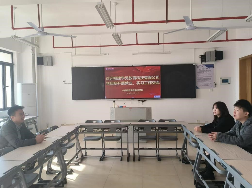 2024年12月24日,福建学昊教育科技有限公司一行到十大网投官网开展就业、实习工作交流,辅导员林维杰、苏晗参加会议。