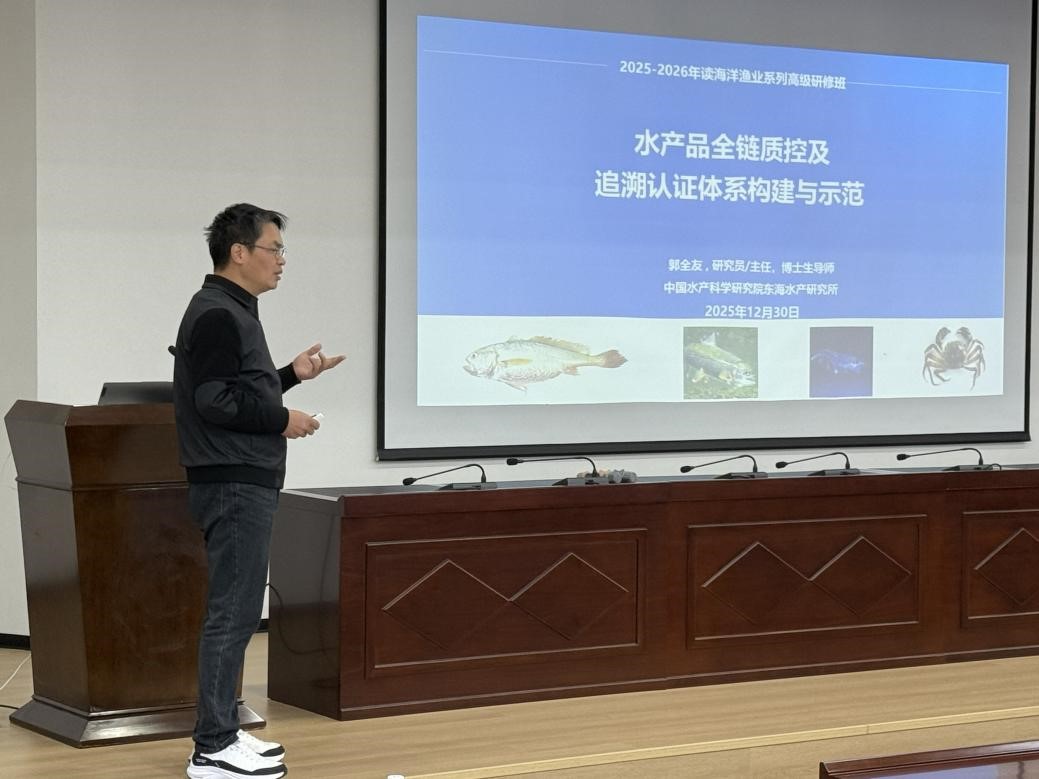 研修班上中国水产科学研究院吴燕燕研究员,直指水产品加工产业瓶颈,系统讲解了以大黄鱼为代表的加工保鲜技术创新、副产物高值化利用等具体路径,为产业升级提供了明确的技术方向。同院的郭全友研究员,聚焦质量安全,详细拆解了构建水产品“从池塘到餐桌”全链条质量控制与追溯体系的难点与原则,强调了标准化数据采集与多方协作对建立消费信任、打造产品品牌的核心作用。来自厦门大学教授艾春香,从种苗、养殖模式、饲料配方到病害防控,逐一阐释了健康养殖的关键技术节点,并重点探讨了如何将技术规范转化为可落地的行业标准,以解决实际生产中的协同难题。