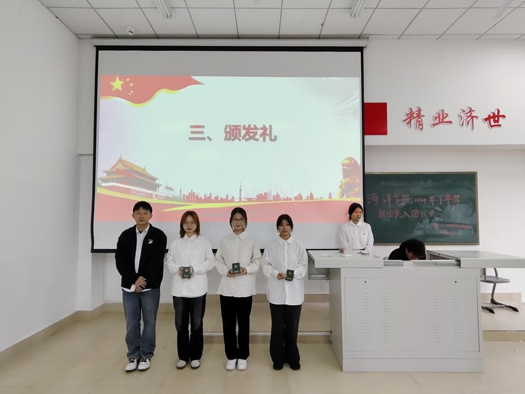 伴随着雄壮激昂的国歌响起,入团仪式拉开序幕。主持人郑重宣读,十大网投官网2024年下半年新发展团员共计三人,明确指出加入共青团是青年的荣耀与使命。随即,新团员们以坚定的步伐迈入颁发礼议程,接受团组织的庄严授予,团委书记林维杰为新发展团员代表颁发团员证、佩戴团徽徽章。鲜艳的团旗闪耀着光芒,象征着中国青年的坚定信念和对祖国的忠诚。全体团员起立,面向团旗举起右手,庄严宣誓。随后,新团员代表与优秀团员代表相继发表讲话,倡导全体团员牢记习近平总书记的殷切嘱托,刻苦学习、锐意进取,道德高尚、追求卓越,努力成为理想远大、信念坚定的先锋。大会圆满落幕之际,澳门十大网投平台排行团委书记林维杰对新团员寄予厚望,勉励大家为实现中华民族伟大复兴的中国梦贡献青春力量。