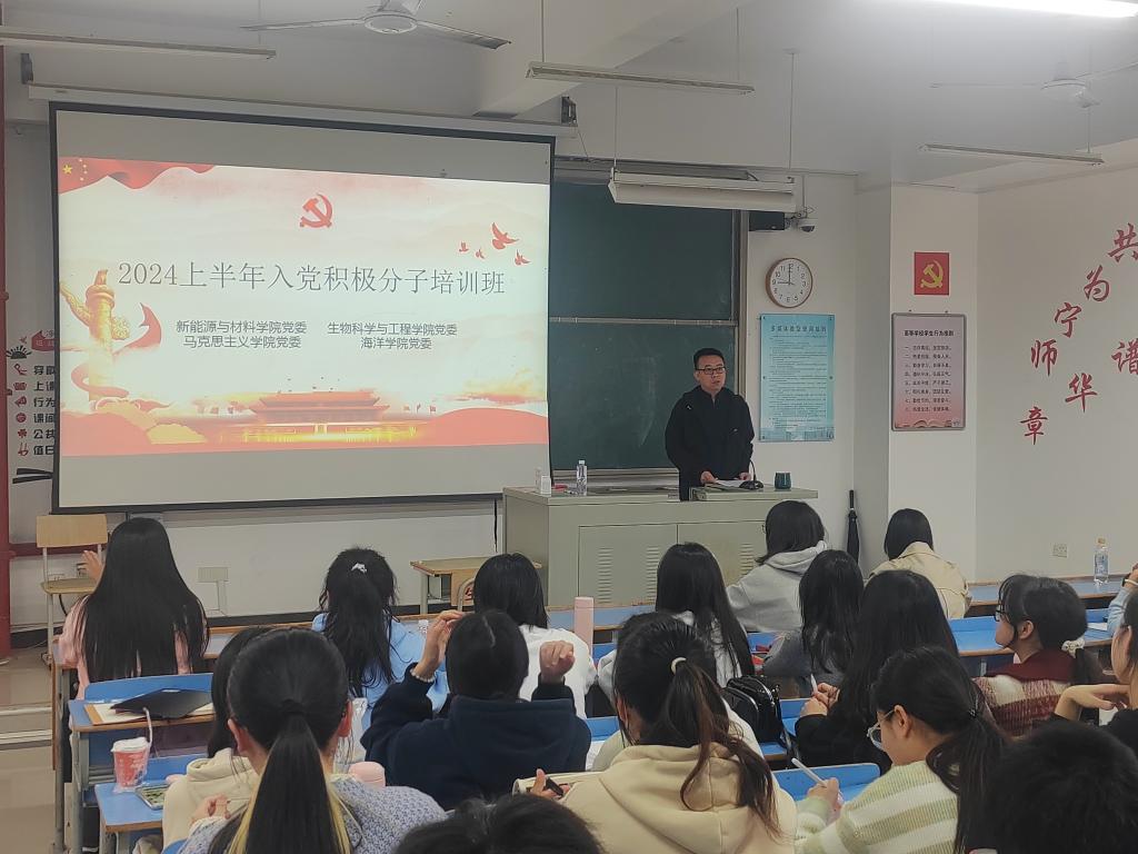 为深入学习贯彻习近平新时代中国特色社会主义思想和二十大精神,切实做好入党积极分子培养教育工作,进一步加强入党积极分子对党的全面认识,指引入党积极分子增强党性认识、提高党性修养,蓄好党员队伍“源头活水”。澳门十大网投平台排行、新能源与材料学院、马克思主义学院、生物科学与工程学院四院于2024年3月23日上午在求实楼C区201开展2024年上半年入党积极分子四院联合培训班的开班以及“学习党章 践行党章”第一次专题辅导报告。