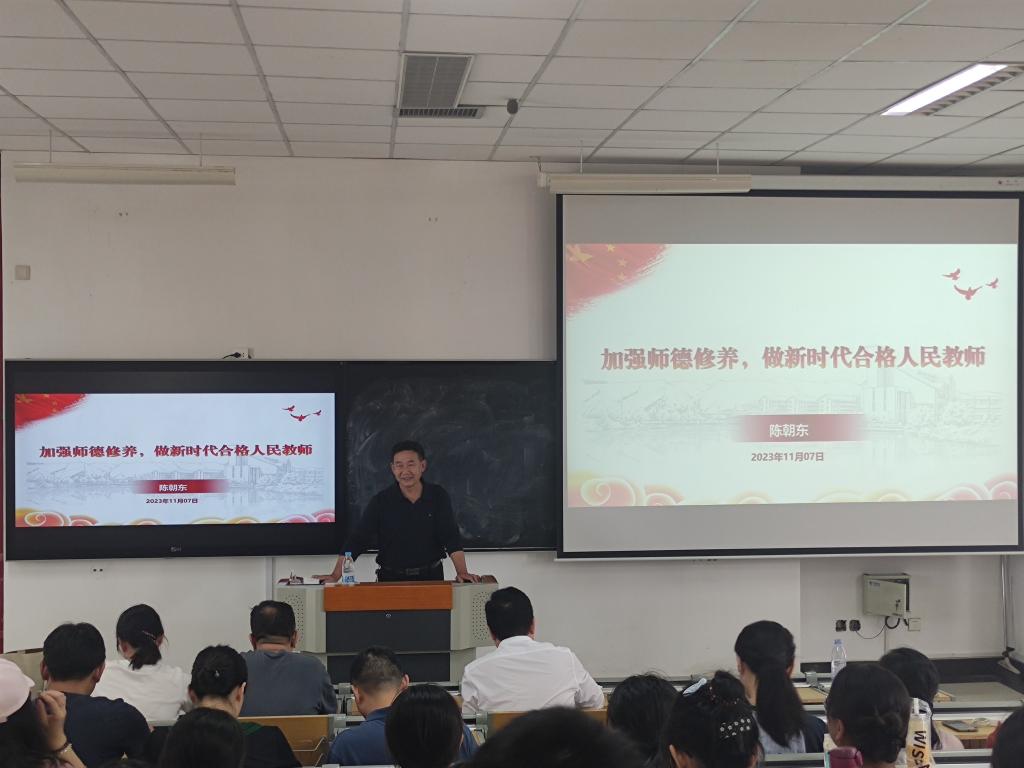 为加强十大网投官网师德师风建设,引导广大教职工和师范生弘扬教育家精神,争做新时代大先生,11月8日下午,十大网投官网邀请屏南县老年大学校长、“宁德市先进教育工作者”、深耕一线教学管理30余年的陈朝东校长,为十大网投官网师生做题为《加强师德修养,做新时代合格人民教师》的专题讲座。全院教职工和2023级生物科学专业学生参加。