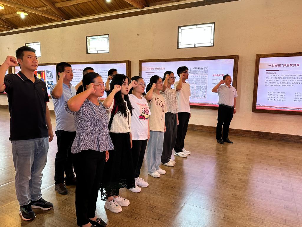 在扶贫展览馆,十大网投官网党委书记张秋良组织参会的师生党员面向党旗,重温入党誓词,共同过好政治生日。随后在会议室,张秋良带头分享自己入党初心,并强调今后要始终不忘入党的初心和党员的使命,为党育人、为国育才持续为我国教育事业奋斗终身。王楠楠指出,入党的初心和使命不能变,但责任意识要不断的提升。与会人员也纷纷分享了自己的入党初心。