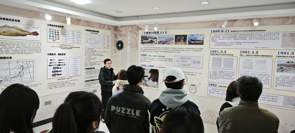 展历程。展馆内珍贵的资料与生动的场景,让师生们深入了解大黄鱼产业从初步建立到不断技术攻关的产业变迁史,同时也让师生们深刻的感受到海洋产业在拉动经济增加中的重要作用。